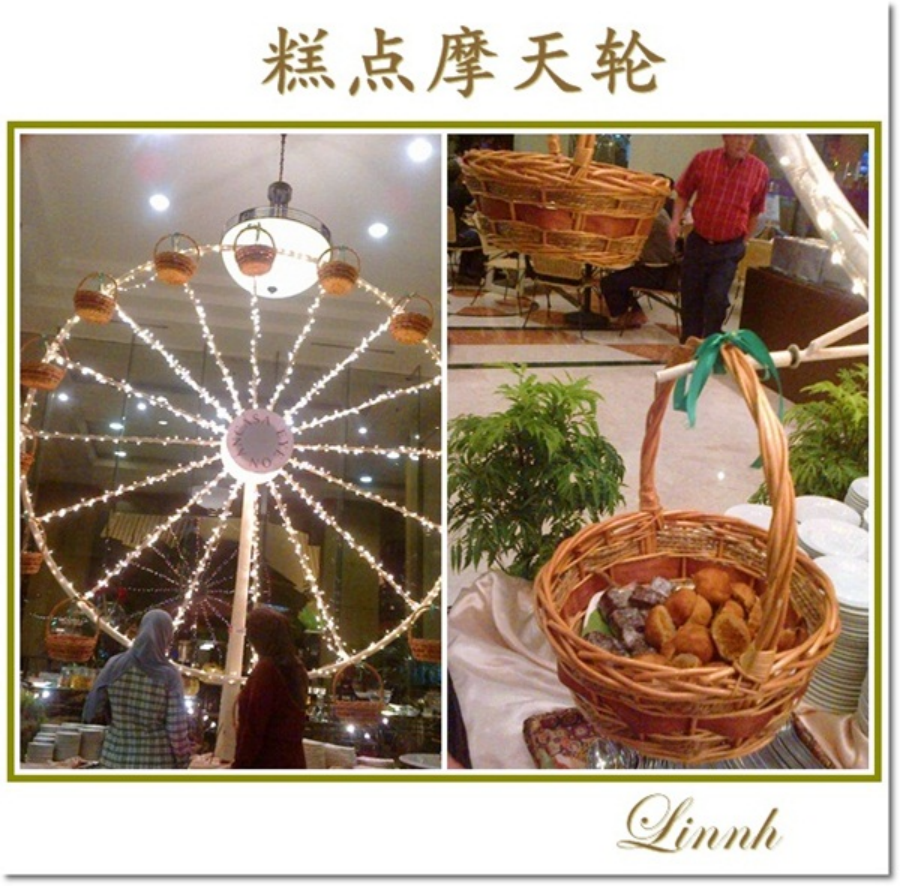 每个篮子里装着糕点,你转一转取一个,很有新意。
