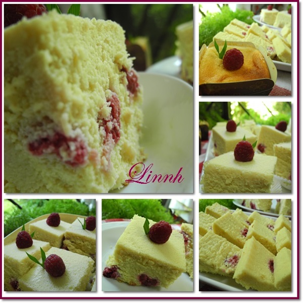 鹅黄色的蛋糕配深红的覆盆子,赏心悦目,