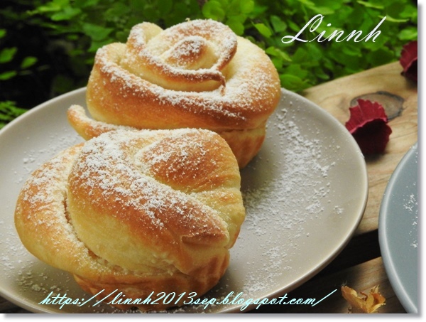 把面团切成小块,错有错着,产品小巧玲珑,烘焙时间缩短。看着一个个面团在烤箱里像玫瑰花盛开,是烘焙至高享受。两盘讨喜小‘可芬’让心情顿时飞上云霄,女儿即刻张罗摄影道具。这就是疫情下母女俩最爱的游戏,厨房里我不再孤单。