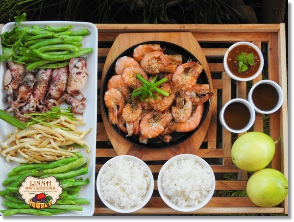 想吃得丰盛又懒惰想菜肴,最简单就是把所有食材弄熟入口即可。我用牛油把白雪菇煎熟,不加油以少许盐炒熟四季豆。虾下盐在铁板上烫熟再撒干芫茜碎,保持原汁原味。鱿鱼撒粗胡椒及少许盐焗熟。所有食物没有过多调味料,自制蘸酱提升了海鲜的鲜味。