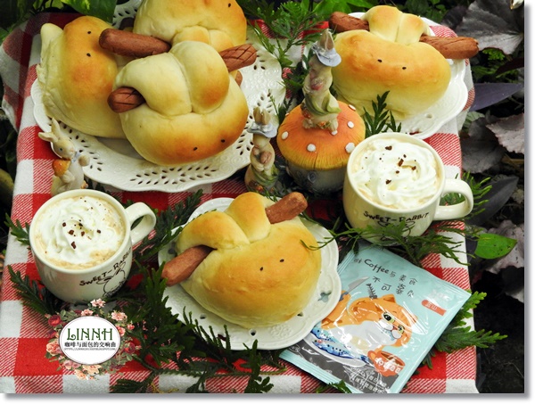 做了一些老面包子,太久没做,丑得无法端出来却被吃光。剩下的老面我随手加入面粉和牛奶,边做边记录份量,做成八个兔子餐包。这个餐包体积很大,吃一个就很饱。开个兔子主题的派对,把兔子摆设当背景,还似模似样,有点像爱丽丝梦游仙境。