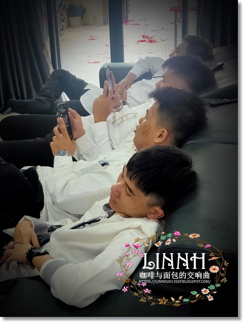 到了喜宴会场,宾客比我们早到,都是自家人,不拘小节。我们是主人,得招待宾客,务必让大家感到宾至如归。左右都是手机和相机对着我们拍,一时之间成了重份量的配角。今天的新郎新娘才是主角,似乎有点本末倒置。