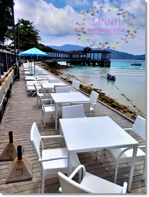早餐没吃,随身带的三文治在船上已分给几个男生。经过一番折腾,前往酒店餐馆用餐。环境优美,靠海的餐桌最让人心动,可惜热浪侵袭,不能舒服用餐。女儿建议隔天在那儿用早点拍照。我说不必,直接拿面条去那儿拍就是,明日还未知拍得出这么蓝的海景吗?三个女人一个墟,对着海景拍三盘面条,拍得兴起,我们的关系是母女、婆媳、姑嫂。