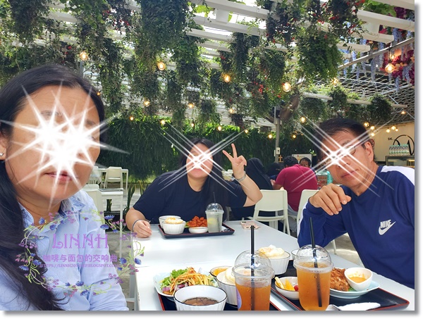 午餐时间Loveing Summer 餐厅有不少人在用餐,特地等人潮散了才踏入。年轻小姐姐好心请我们坐在里面以免被阳光照射,我礼貌拒绝,坚持坐在花圃旁。选这座位是看准它能拍出最有意境的用餐图。在游客景点不对食物抱太高的期望,最主要是捕捉美丽的一刻,事后翻看照片,重温当时快乐的心情。