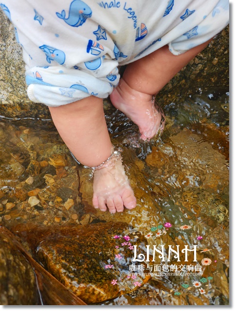 流水冲击石头的噼啪声、风吹树叶的沙沙声、习习凉风,这些对刚来到这世界的小希希都是新体验。卷起他裤管,告诉他嫲嫲要让他的小脚浸泡在冰冷的溪水中;石头很滑因为有青苔,小石子尖锐,脚板会有点疼。抱着他慢慢地把他双脚放入溪水中,这是我期待的一刻,想看孙子有没遗传我和他曾外公的基因,热爱户外生活的基因。冰冷的溪水没吓到他,这可不是浴室里加了热水的洗澡水,对突如其来温度的落差坦然处之,两只小脚板在水里搓揉。哦!果然是嫲嫲的孙子。山水之冷他没退缩,再大一些可以在溪里戏水,希望那时候鼠尿症已在马来西亚绝迹。