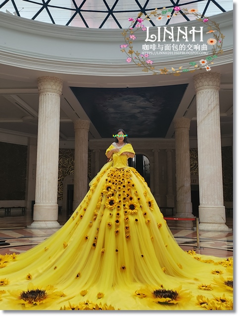 下了缆车步入日食广场,此时的广场更是静得出奇,空无一人,仿佛整个空间都停滞了。广场中央的灯光悄悄亮起,像星星,一盏盏地浮现在雾中。那光不耀眼,却温柔地照亮四周的轮廓。空荡荡无人的陌生环境我跑下地底楼层,去早上排满人的向日葵礼服打卡点拍照。女儿面露惧色,阴森森地不见人迹,礼服更显诡异。